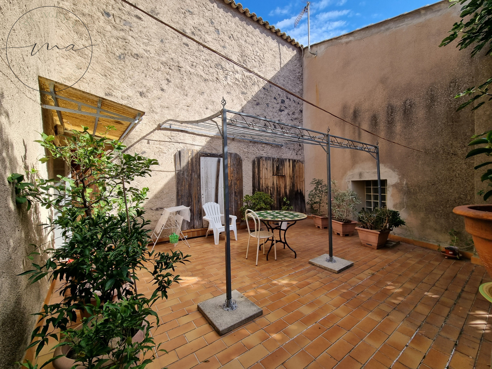 Située au cœur du village, adossée aux anciens remparts, cette authentique maison de caractère offrant de très beaux volumes et un extérieur arboré avec cour et grande terrasse est une opportunité rare.